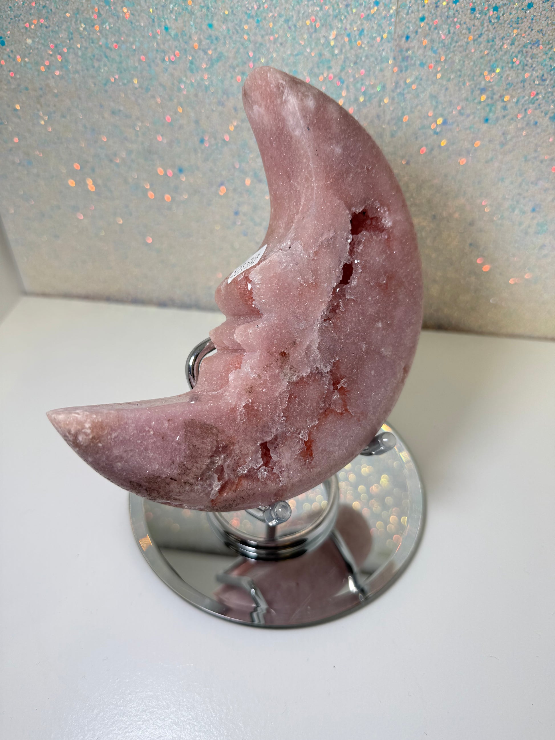 Large Pink Amethyst Moon On Stand